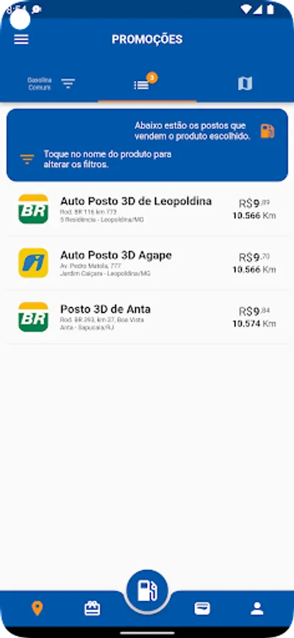 With the app you can fill up at any Grupo 3D station in the states of Rio de Janeiro and Minas Gerais.
