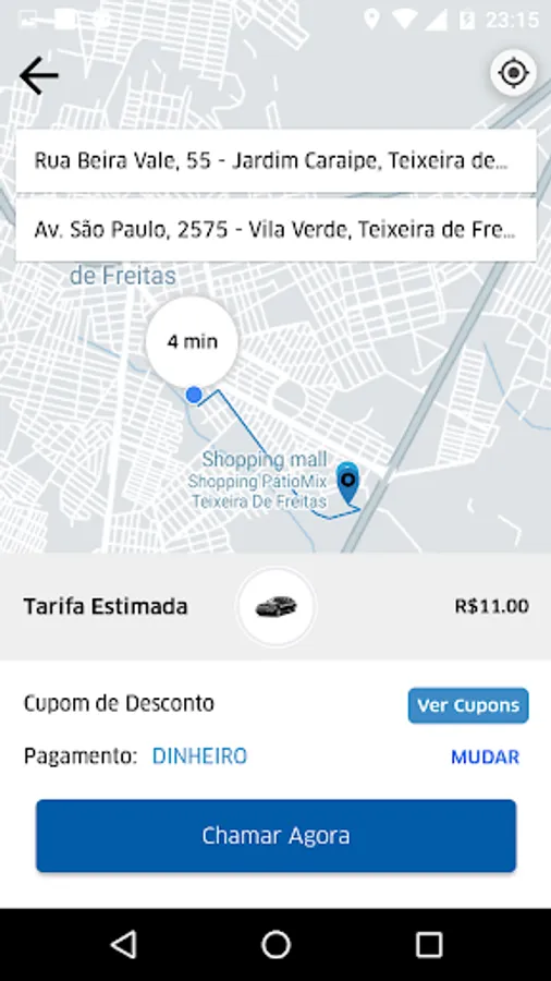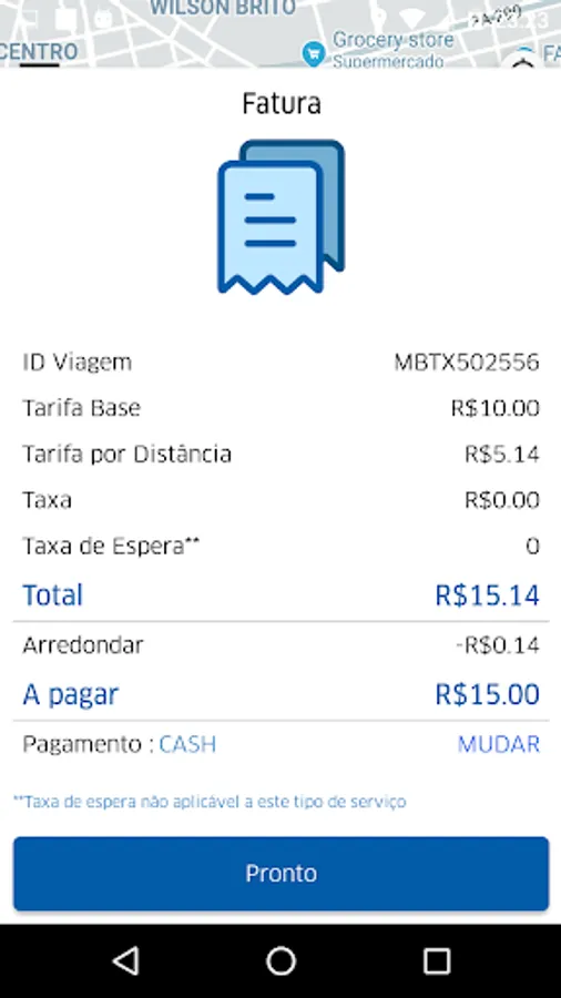 When requesting a driver for own use or for objects, the user receives the total value of the trip estimate, which starts with a base price and increases according to the time and distance to be traveled. When the trip is finalized the total amount is debited in the user's account or paid with cash. It depends on the way you choose to be charged.