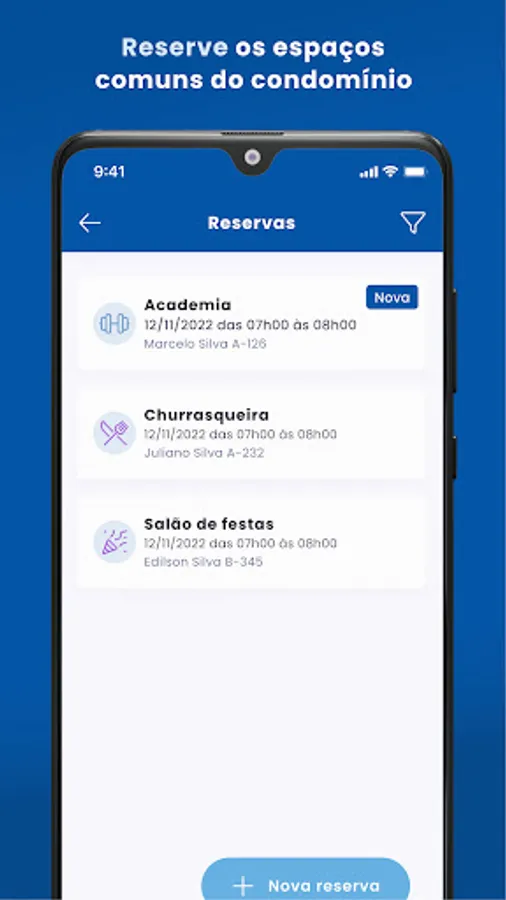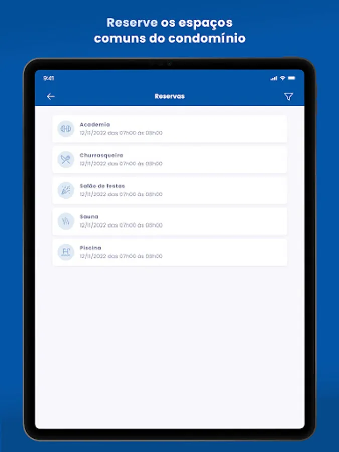 • RESERVATIONS: Residents make reservations for common spaces (barbecue grills, party room…) through the ConectABR app. No more calling the concierge or building manager to check the spaces' agenda.