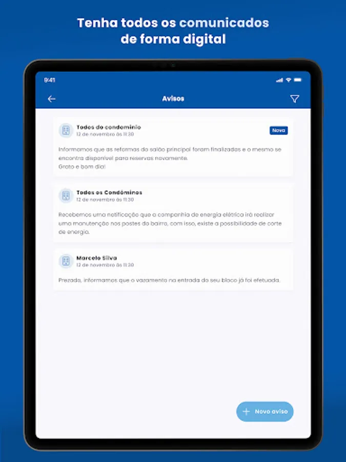 • NOTICES: Communications sent by the trustees in an individual personalized way, by towers or to all residents that receive online through push notifications via mobile application or web portal.