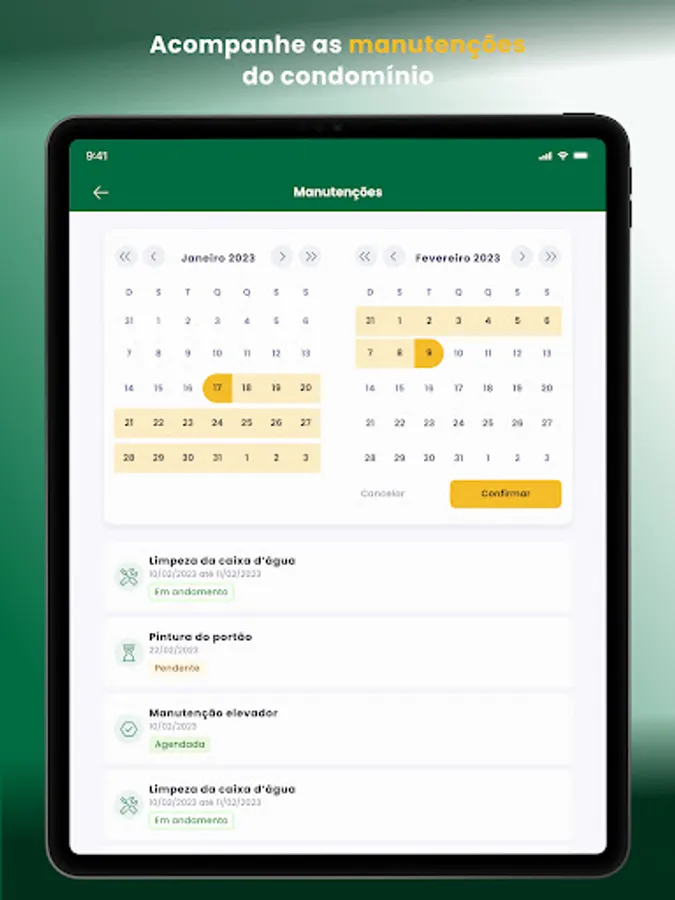 The app also has several other facilities, such as exclusive services and insurance benefits for your condominium, schedule of upcoming meetings, registration of condominium employees and much more! Download and enjoy your new world with peace of mind!