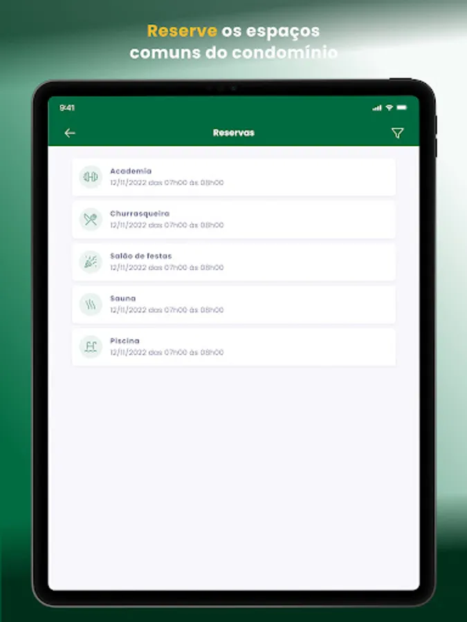 • RESERVATIONS: Barbecue, ballroom and other common spaces in the condominium can be reserved in a few clicks on the app.