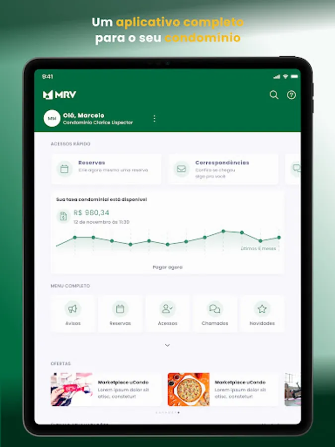 An app made for you, manager, resident and employee of an MRV to live the day to day of your condominium with a world of facilities. Discover some of the features: