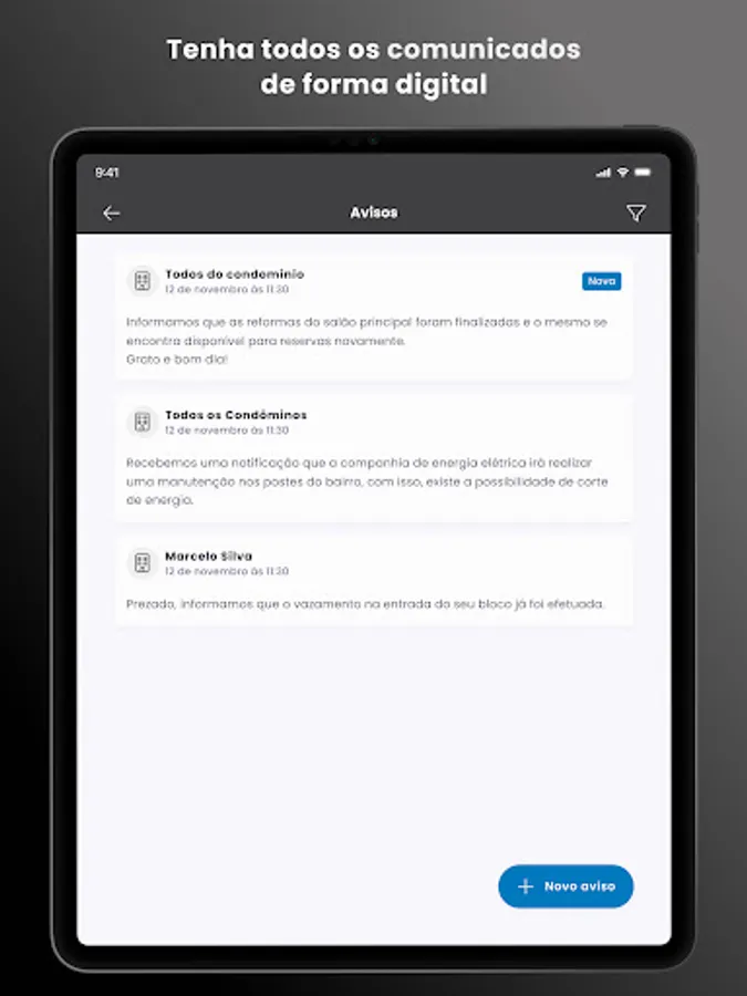 Want more? We will have surveys of the Condominium, the agenda of upcoming meetings, among other information that will be a direct channel with the Administrator, improving and facilitating communication.