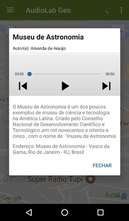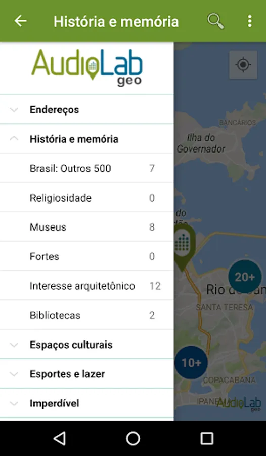 The AudioLab Geo is a sort of sound map that allows listening informational and educational audios on geolocated points of historical, social and cultural interest, initially in Rio de Janeiro. Partnership: AudioLab and LCC / UERJ. Share this idea!