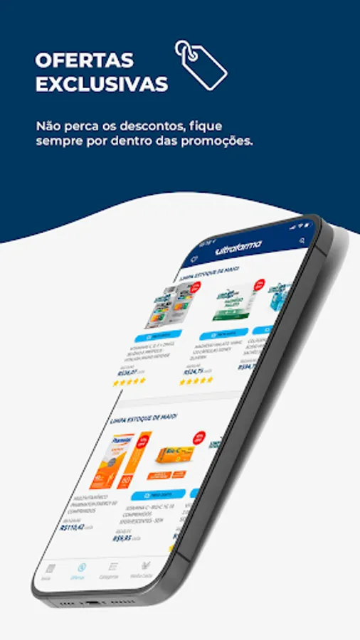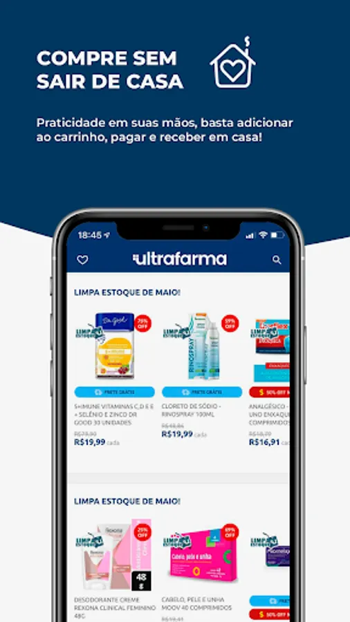With easy navigation, the application has buttons for easy identification of categories, using icons and contrast colors, in addition to a clean environment with a focus on the product. For those who want to explore all the offers and brands marketed by Ultrafarma, the menu is intuitive and easily accessible.