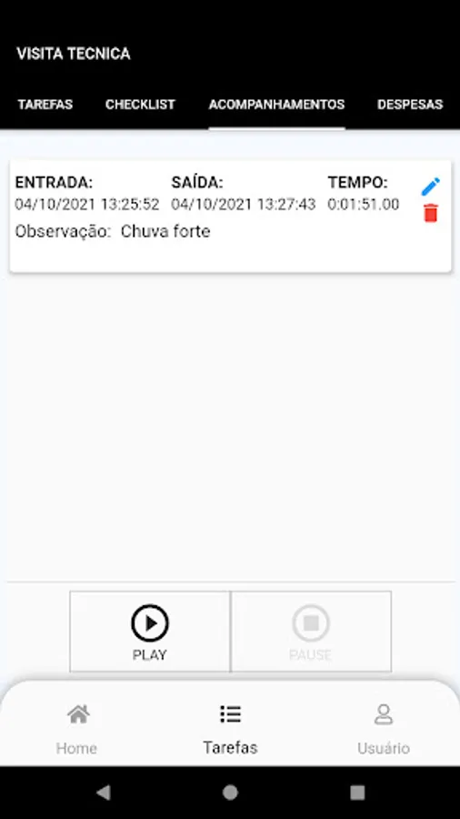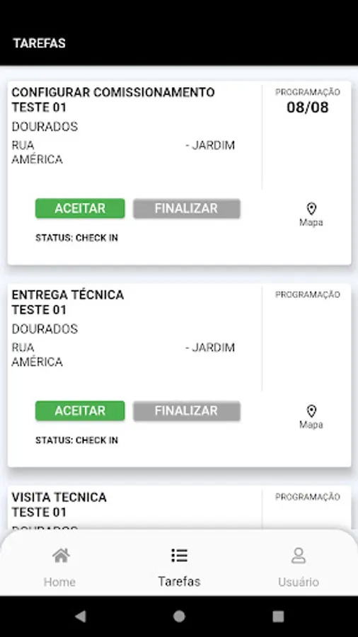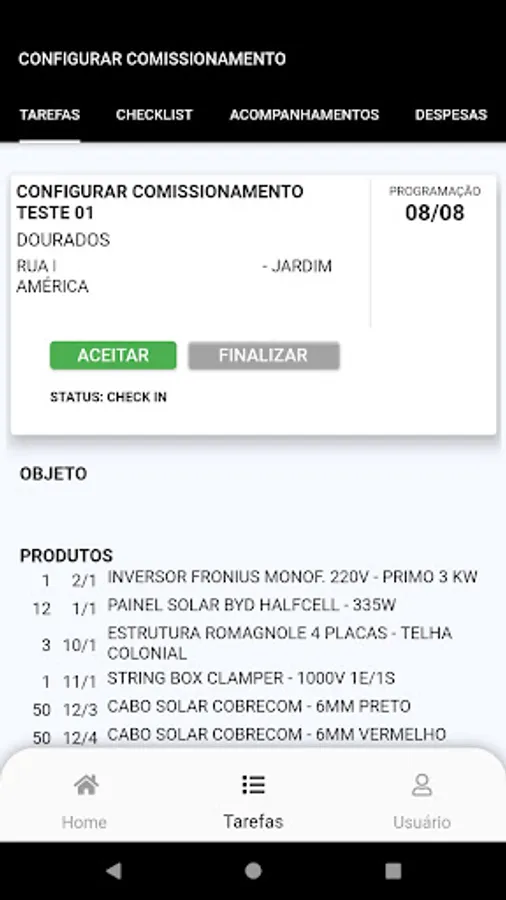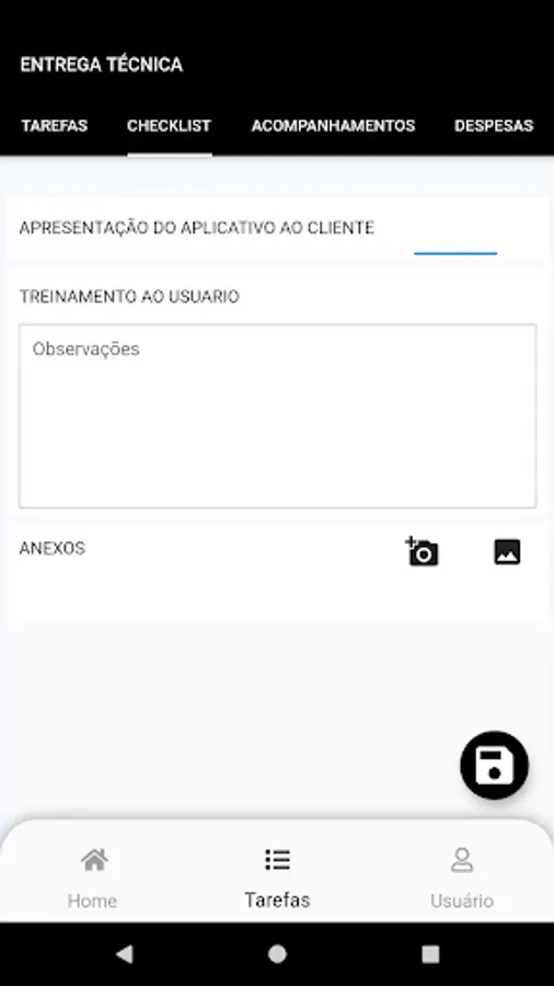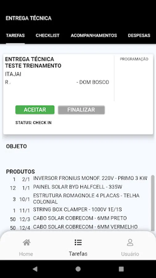 Application where the user can manage a certain task, the task can be managed through maps of location, time, images and checklist, control of the time spent from the beginning to the completion of the task, image and complementary information, to products expenditure that was not foreseen in the task and the equipment, products and equipment used in the task such as parts and tools used for task completion, and the synchronization of completed tasks. Aiming to streamline access to all information, delivering more efficiently to the service of the final consumer.