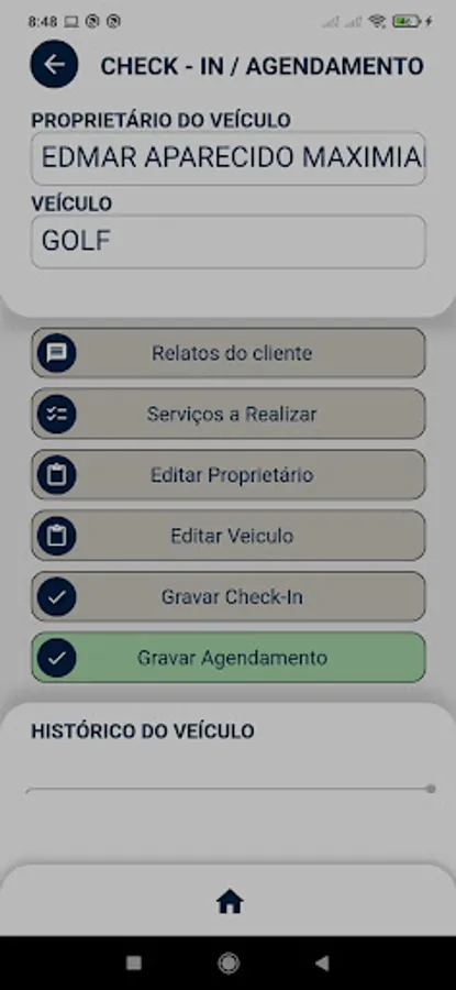 Application where the user can schedule and check In with a description of the problem and services that the service provider offers, through a plate registered in the system, if the plate is not registered in the system, the user can register it, if the registration the license plate changes the option to edit the license plate and owner registration. If you need to reschedule an appointment, it can be done from the existing appointment, in order to speed up access to all information, delivering faster and more efficient service to the final consumer.
