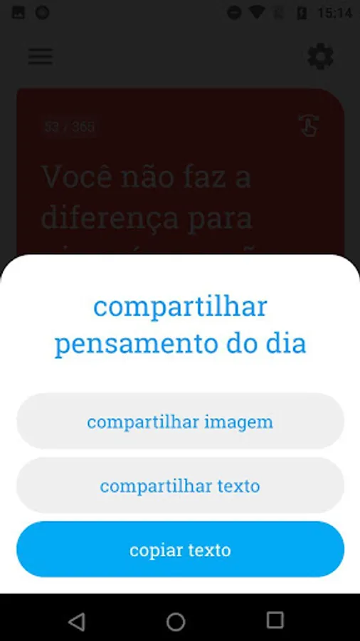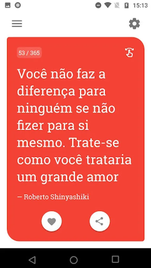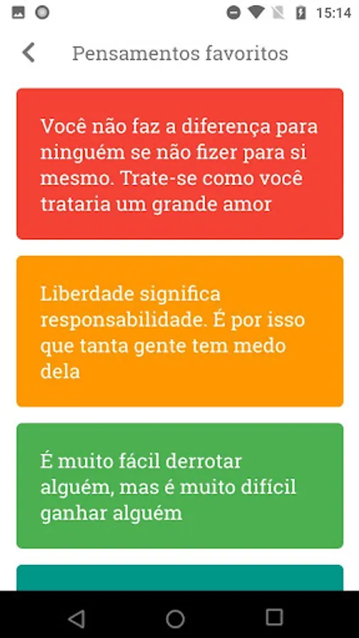 "Thought of the day" is an application entirely in Portuguese, with daily motivational phrases and minutes of wisdom that help you achieve happiness and success, improving your self-esteem and confidence. If you are looking for more motivation, wisdom and inspiration, the phrase of the day is perfect to help in your daily meditation and reflection for everyday life.