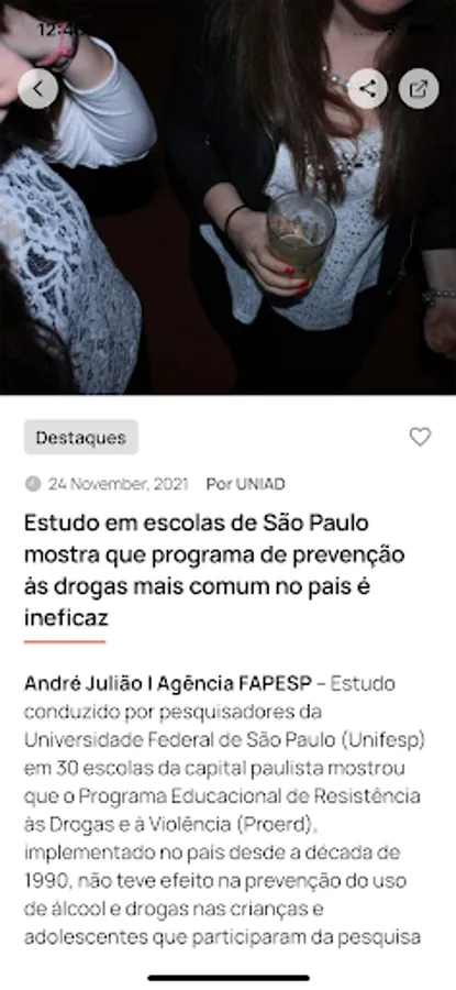 The UNIAD - News and Articles app was made for you who want to stay updated and well informed on the most diverse subjects related to teaching and research on alcohol and drugs!