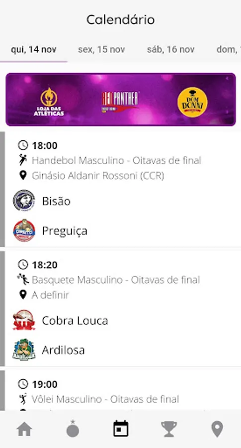 - View competition match schedule, mode switching and standings