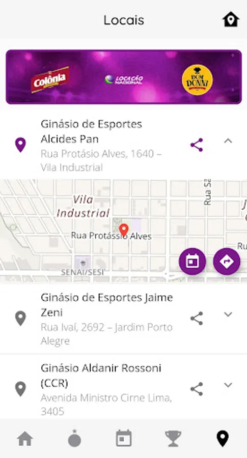 - Browse game locations and get directions to them