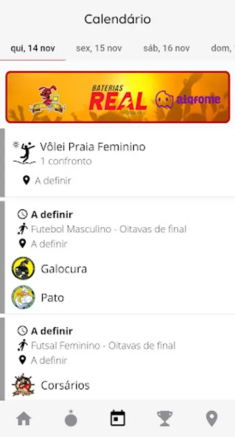 - View competition match schedule, mode switching and standings