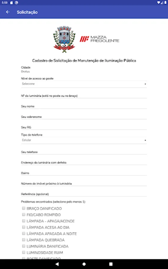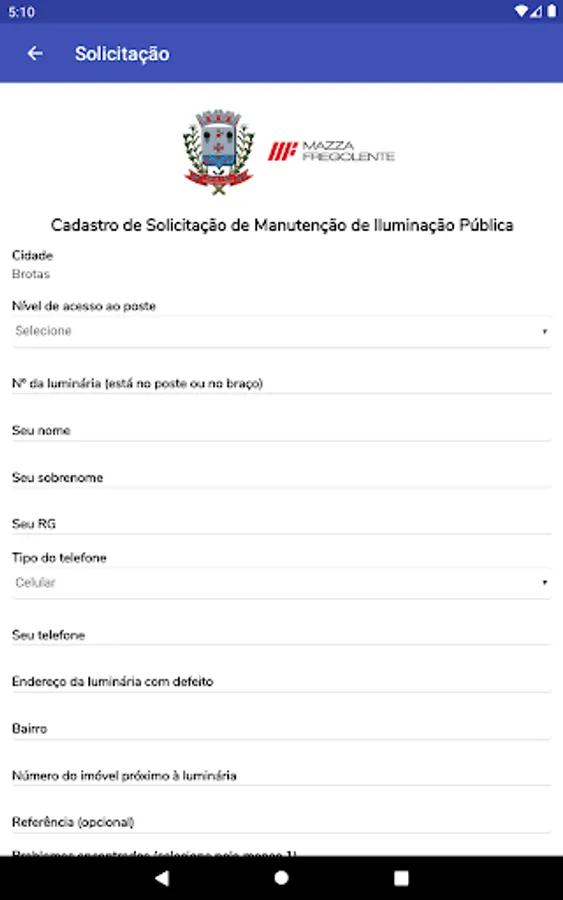 In order to strengthen relationships with its customers, the company Mazza Fregolente makes available to you the application Brotas Lighting Street. Here you can open a street lighting repair request from anywhere in the city.