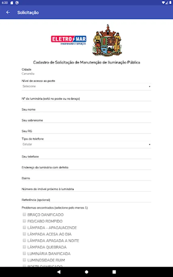 In order to strengthen relationships with its customers, the company Eletromar makes available to you the application Cananéia Public Lighting. Here you can open a street lighting repair request from anywhere in the city.