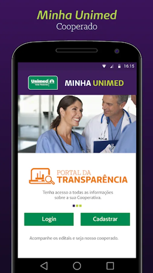 Cooperated, its area in the portal of Unimed Volta Redonda won a new way to be closer to you, the My Unimed application. With it, you can check your medical production, monitor the payment of you share and check how is the financial health of their cooperative, through the Transparency Portal. In addition to receiving news and news about Unimed Volta Redonda anytime, anywhere. More convenience in your hand.