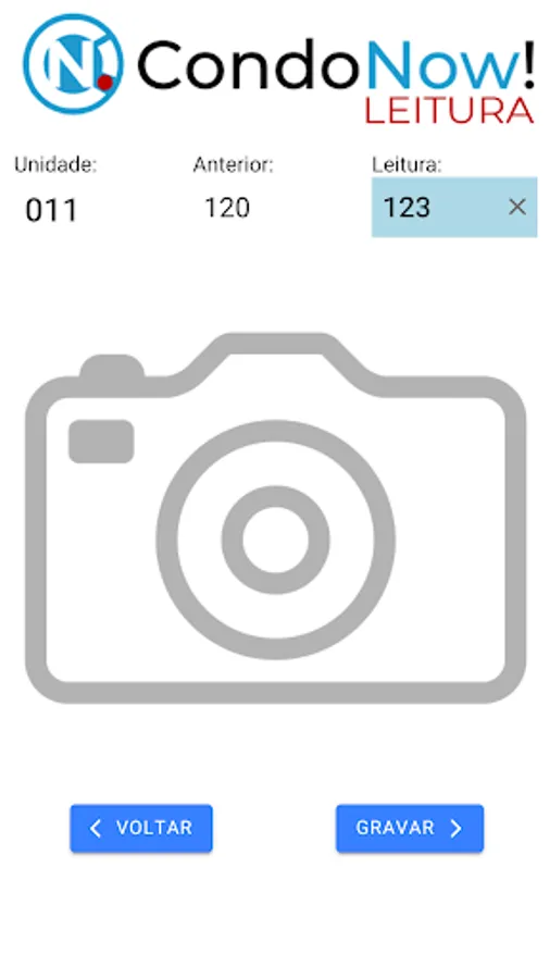 CondoNow system auxiliary app for reading consumption (water/gas) and sending a photo of the meter