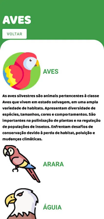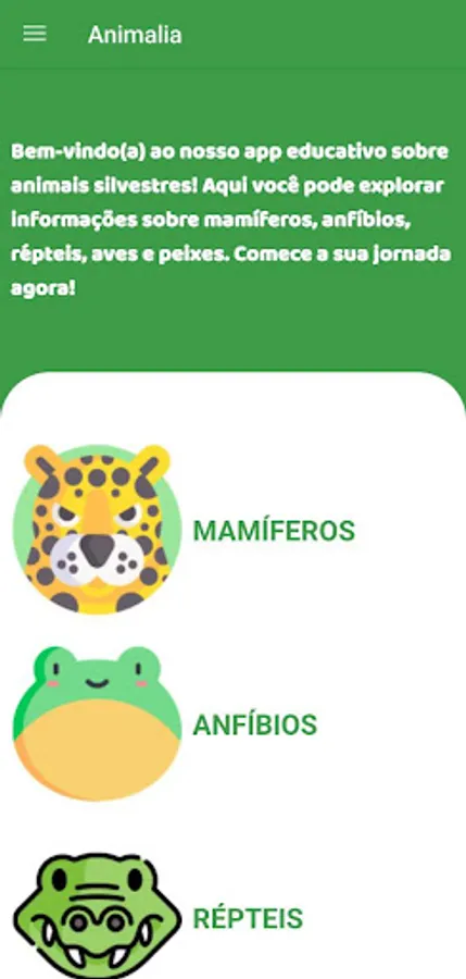 The Animalia application aims to provide guidance on wild animals. It presents wild animals divided into different groups, offering a variety of information about each group and each animal individually. Descriptions are designed to be easy to understand and intuitive.