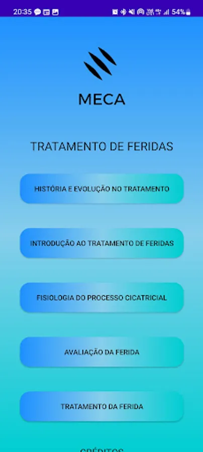 MECA is a wound care application, a mobile solution designed to assist patients and healthcare professionals in the efficient management of wounds. The application is free and can be downloaded on smartphones. The tool provides didactic resources for the user to analyze and understand the progression of the wound, such as texts and images with varied content.