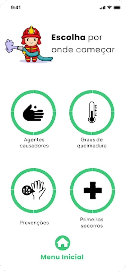 SOSKids is an application for children, whose objective is to teach and raise awareness about the risks of burns and the necessary care. It contains information that will be transmitted in a didactic and simple way, making the subject easier for children to understand. The application addresses different themes, which are presented through stories. After reading, it is possible to answer a quiz with 4 questions related to the theme read, aiming at a better understanding and fixation of the content.