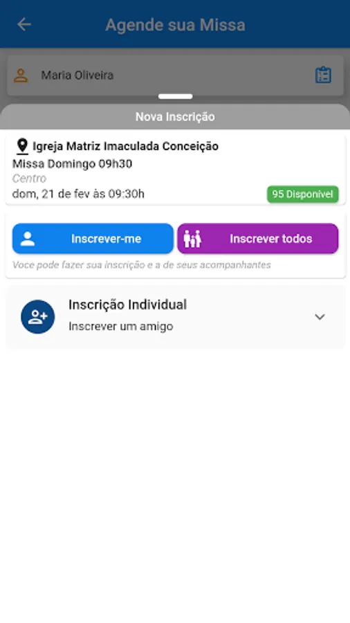 It is an application with the intention of facilitating the scheduling of masses, developed to be easy and intuitive, so that anyone can be using it in a simple and safe way, needing only an email or their own cell phone number to be able to register. .