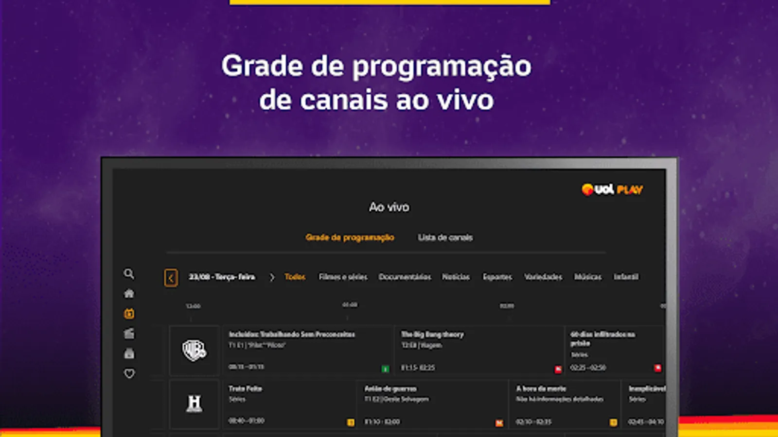On UOL Play you'll find programming for the whole family to enjoy. Play now on movie hits, live sports, series, cartoons, shows, documentaries, and much more.