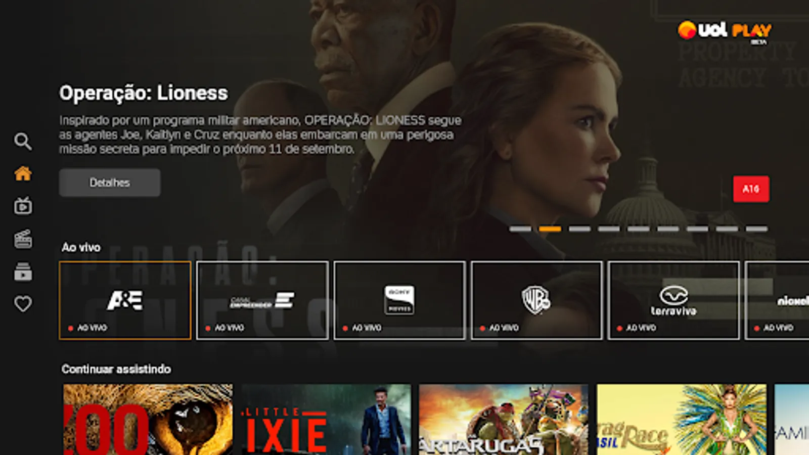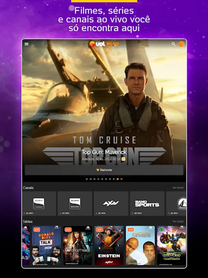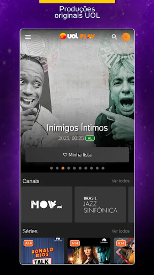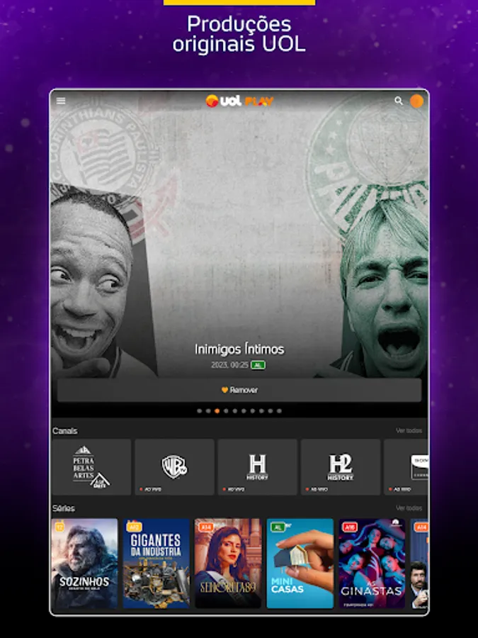 Thousands of content on demand and lots of live programming with guaranteed fun for the whole family. Enjoy movie hits, award-winning series, exciting shows, cartoons for children, news, live sports and original UOL productions!