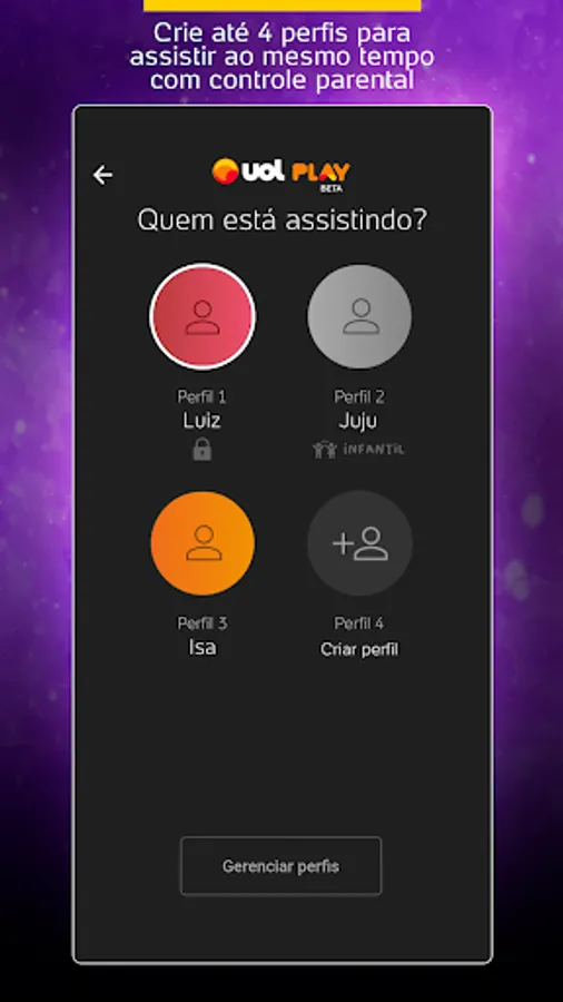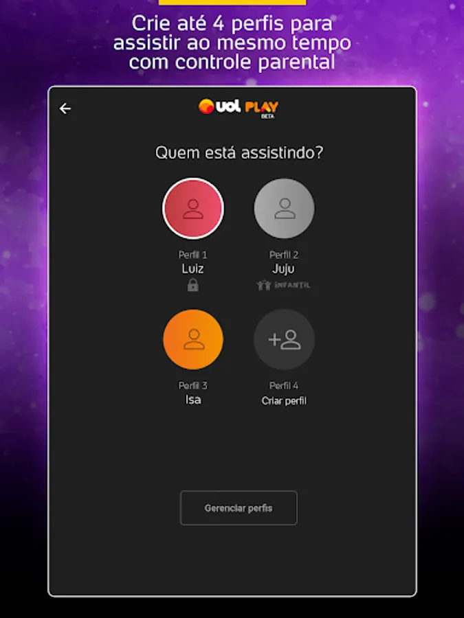 • Create up to 4 profiles to enjoy UOL Play with the whole family