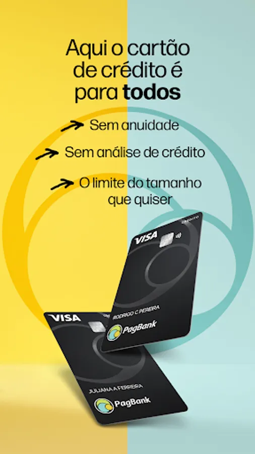 Free credit card, with no annual fee, with a limit released on the spot and without credit analysis, even for negative credit cards. Just invest in one of the PagBank CDBs, which yield much more than savings or reserve your account balance. Each real reserved becomes a limit on the card.