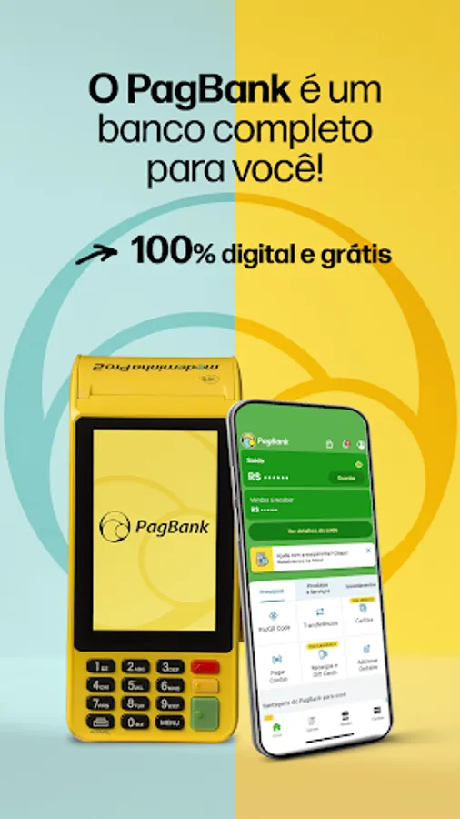 PagBank is the complete bank, with a free digital account, a credit card that you use the limit while your money earns, a free PJ account and much more.