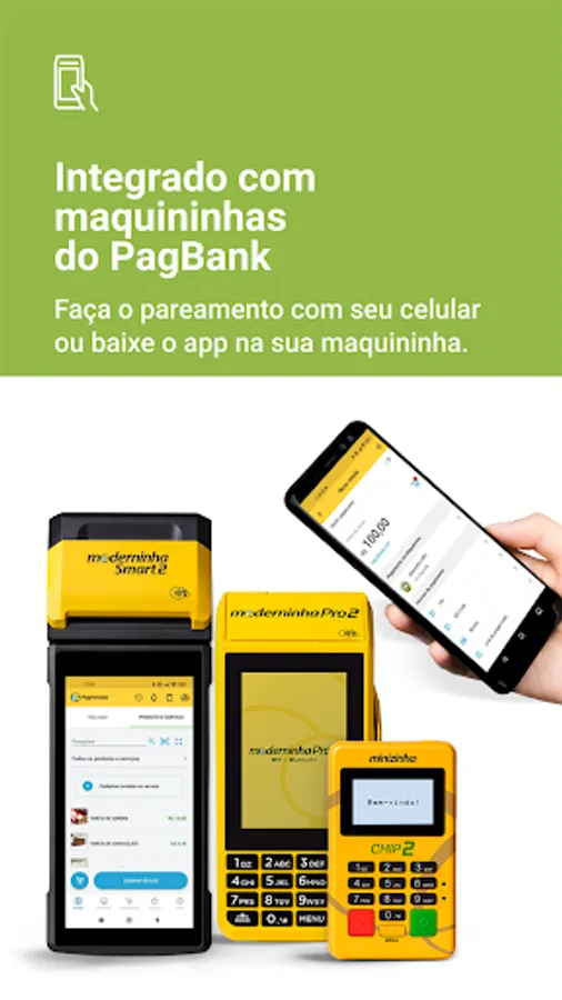 > SALE INTEGRATED WITH PAYMENT: accept payments by card, check, in cash in installments via cell phone;