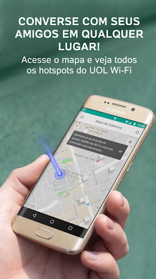 UOL Wi-Fi offers you more than 6,000 internet access points in the national territory. And the best: with the UOL Wi-Fi app (for Android smartphones and tablets), your connection is automatically made! Just log in with your UOL Wi-Fi user name and password only once and that's it, the app connects your device to the nearest network every time you start it. (I.e.