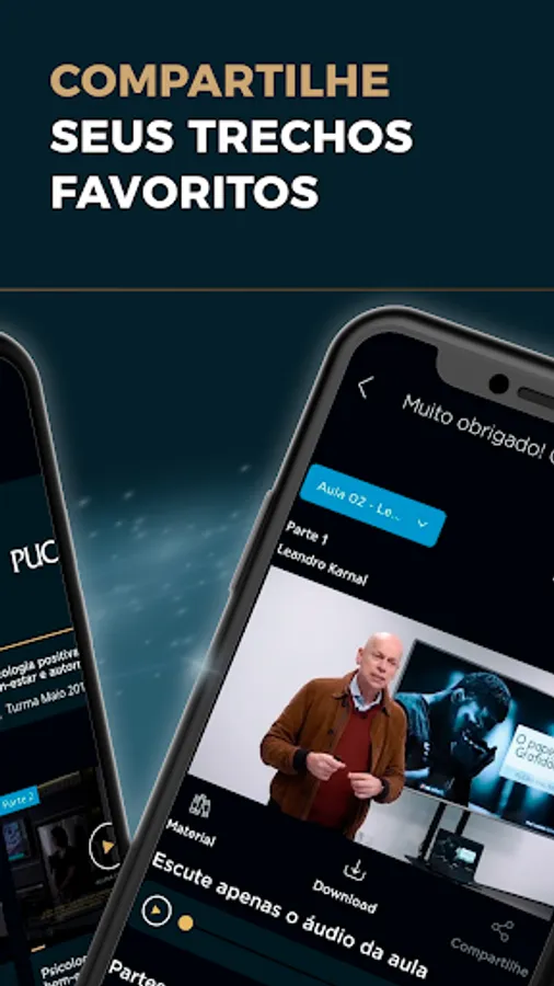 Option to listen to your audio lessons, allowing you to take your classes at the gym, cooking, driving or whenever you want, and even save your internet consumption.