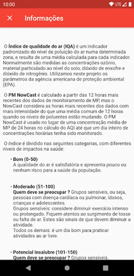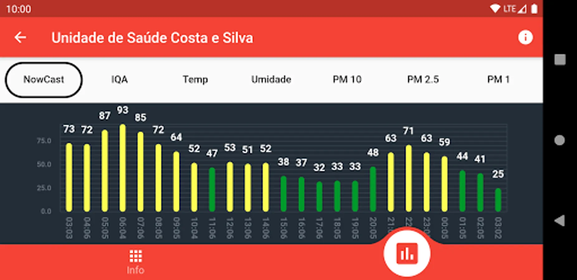 - Access your station measurements, with the following variables: temperature, humidity, atmospheric pressure, Air Quality Index, Air Quality Index Forecast, particulate matter (PM1, PM2.5 and PM10), CO2, precipitation , wind speed and direction), all in the palm of your hand. Other more specific variables can also be monitored: O3, NO2, SO2, H2S, piezometer, inclinometer, water flow, water level and others on demand.