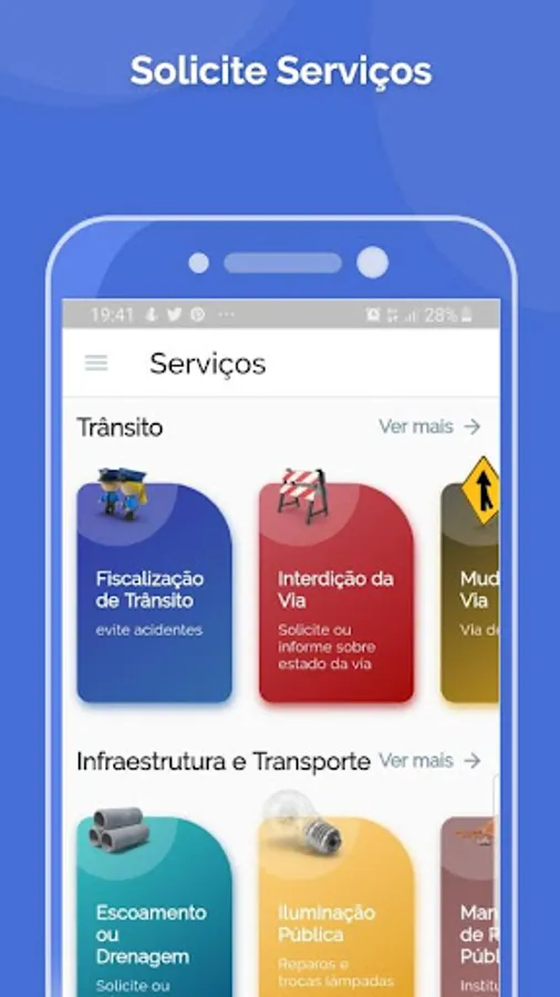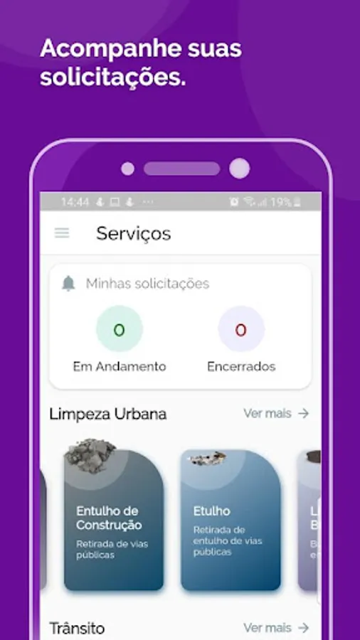SERVICE REQUEST: Request services with practicality and agility using the most modern technology, providing geographic location, photos and data relevant to the problem. Track your requests and their evolution in real time.