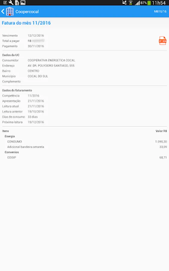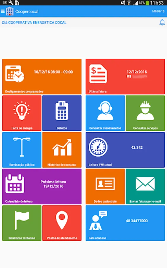 By accessing the first application, inform the Consumer Unit number with digit verifier that information contained in your energy bill, the name and the avatar will help you to identify each Consumer Unit you register.