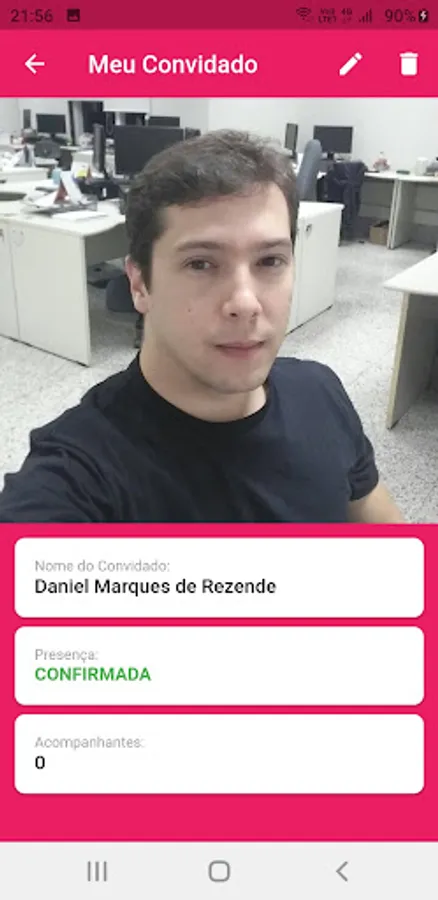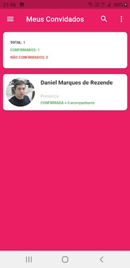- Create your own list of guests for the wedding ceremony, which will allow you to instantly know how many guests have confirmed their presence. You can register a new guest informing the number of companions, or you can invite a friend or family member to select a guest duly registered in the Guest Event app.