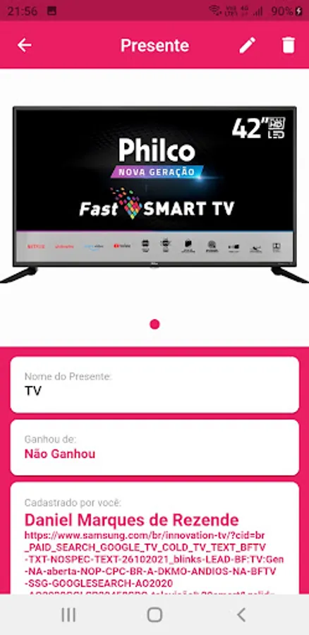 - Put together your own gift list. You can register a new gift or select a gift from a list provided by one of our retail partners duly registered in the Event Store app.