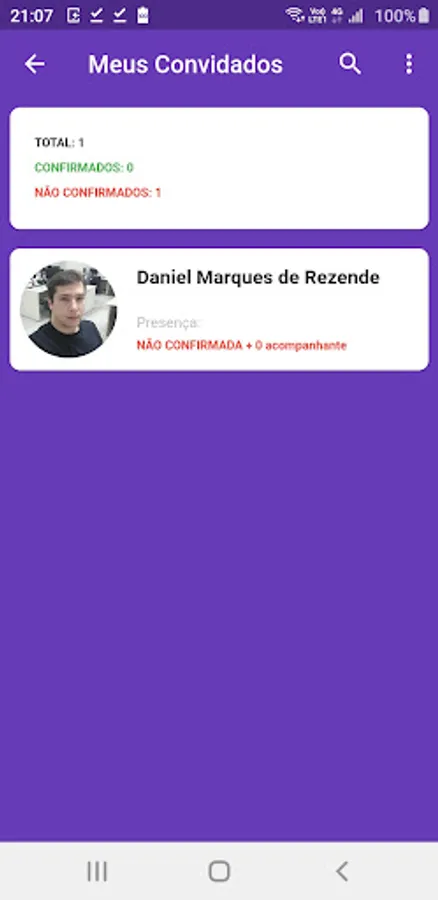 - Build your own guest list for the wedding ceremony, which will make it possible to instantly know how many guests have confirmed their presence. You can register a new guest by informing the number of companions, or you can invite a friend or family member to select a guest duly registered in the Guest Event app.
