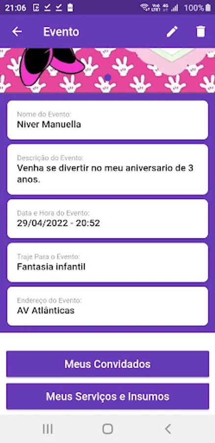 - Assemble your list of services and products that you will hire for your party, so that you can automatically see your contracted value so far. You can register a new service or product or select a service or product from a list provided by one of our service provider partners duly registered in the Evento Serviços e Insumos app.
