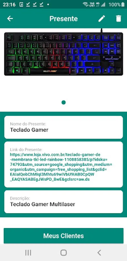 - Manage your products, with photos, date, location and value, so that users of all the applications in the Eventos network can view the advertisements of your products.