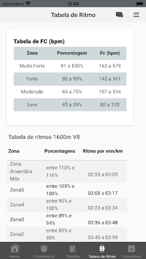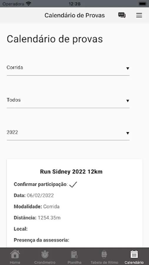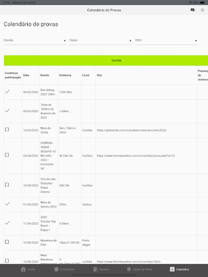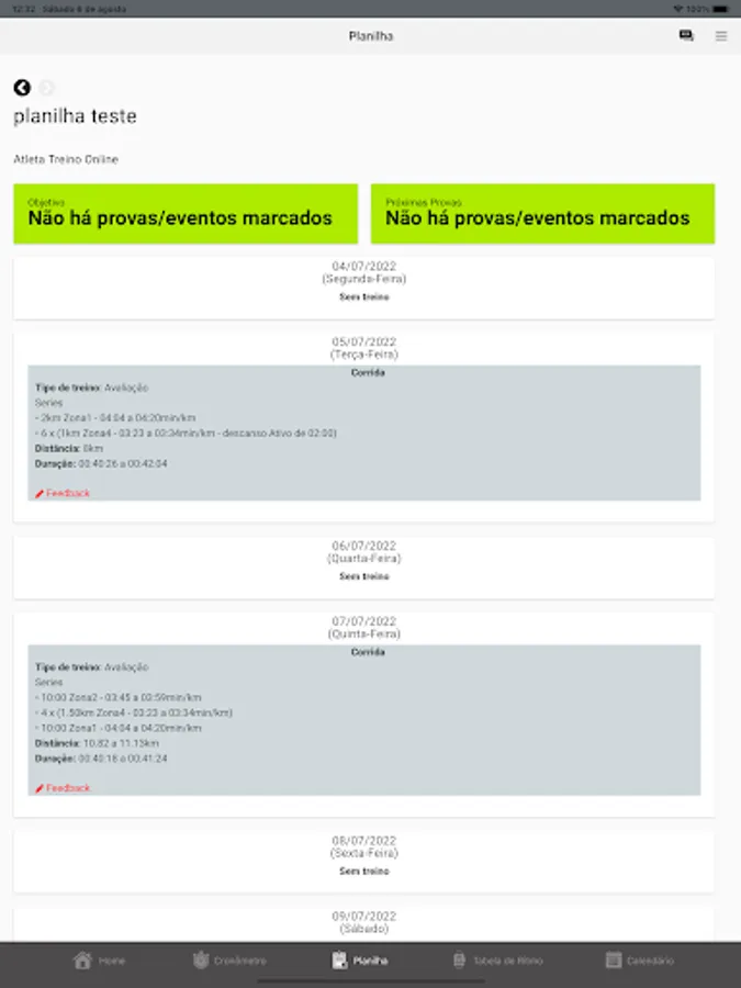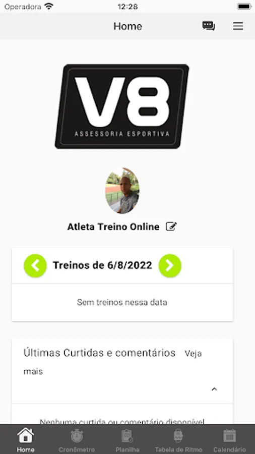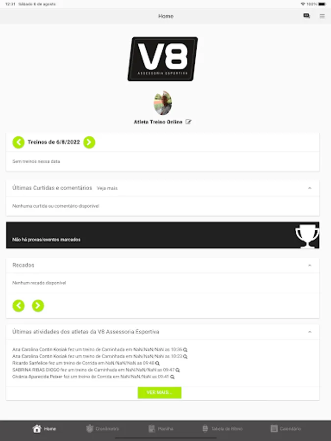 Application for athletes of V8 Assessoria Esportiva that has the following features:
