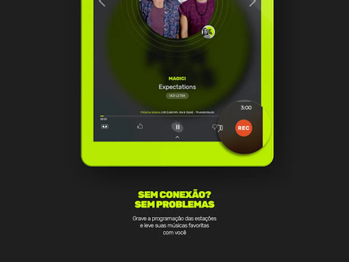 No data? No problems! With the recording feature you can take (download) portions of the radio programming with you anywhere, without the need for an internet connection.
