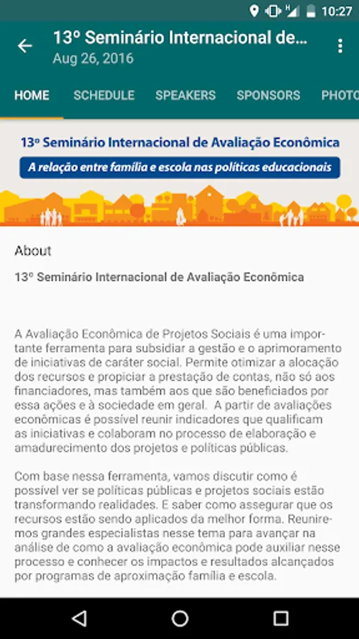 The app provides detailed information such as calendar, speakers, location and related news of upcoming Valor Econômico seminars, which bring together the most influential leaders and officials to discuss issues relevant to the country