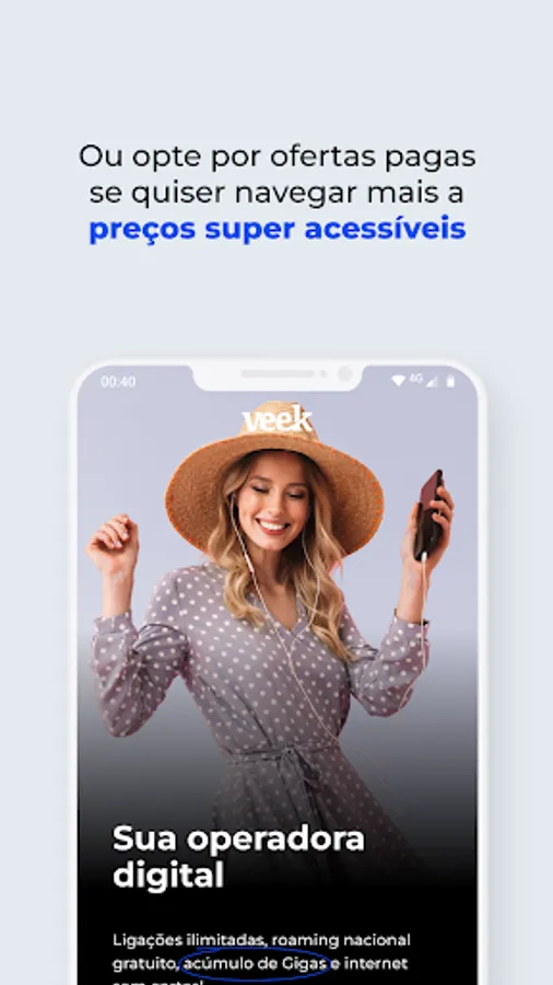 Veek is your digital mobile operator with the innovative differential of a free subscription for you who want internet, calls and SMS, without having to put your hand in your pocket. Download the app now and be part of the revolution!