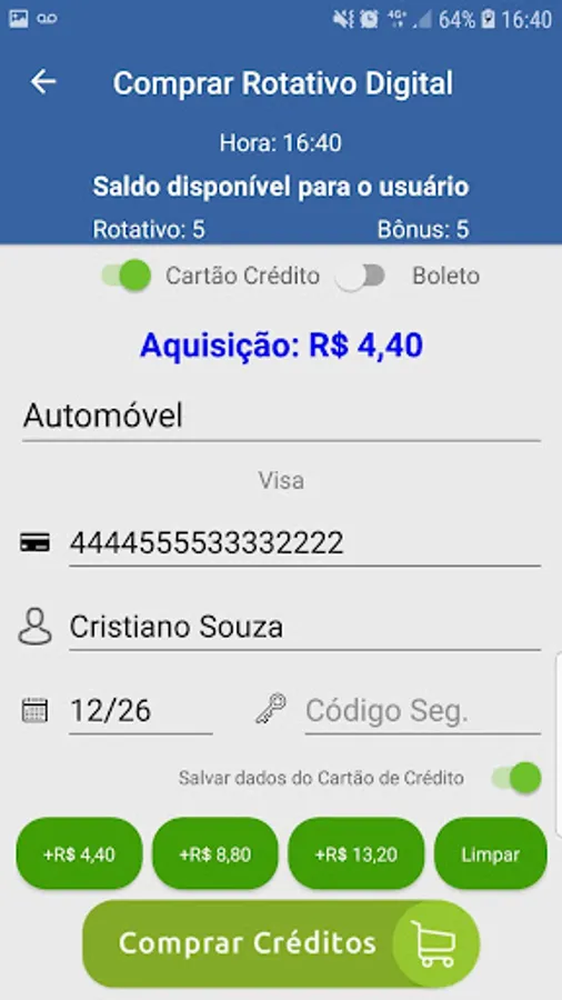The user is allowed to choose between the Revolving (conventional) or bonus, in addition to canceling the purchase of the virtual ticket.