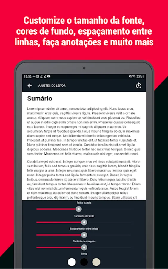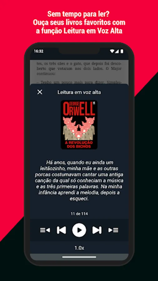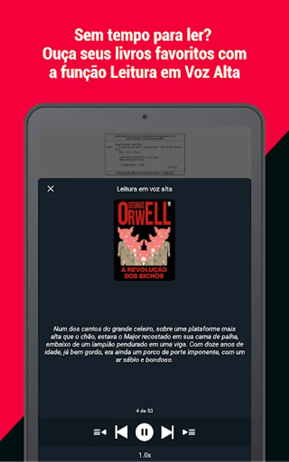 Among the many possibilities that the e-book reader provides, we highlight the Reading aloud function. With this functionality it is possible to listen to your favorite books in an easy, pleasant and uninterrupted way. And you know what is better? It works in the background! You can continue using your cell phone or tablet normally, while catching up on your reading.