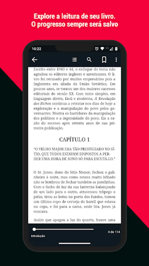 - Read where you left off. In Livroh you don't miss anything, because your reading will always be from the point where you left off.