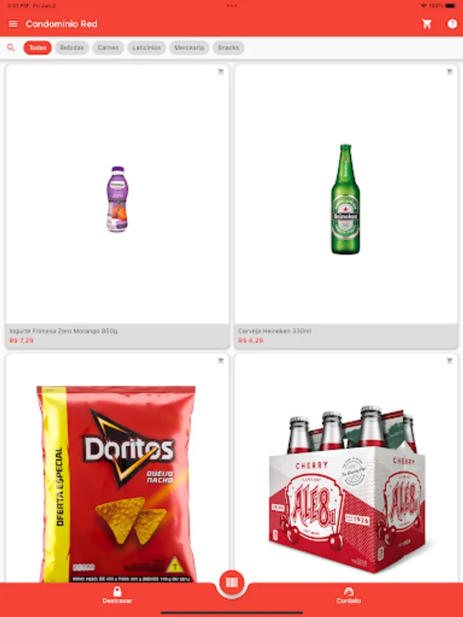 In addition to allowing the purchase of products in a practical and safe way, At Home Store allows the unlocking of doors or refrigerators with restricted products, according to the store's access rules.
