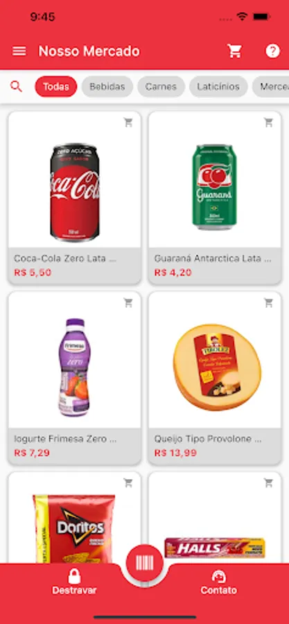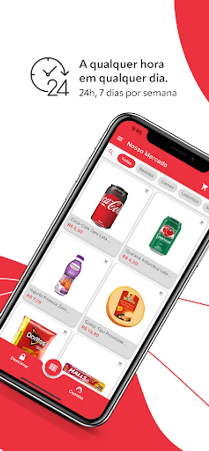 In addition to allowing the purchase of products in a practical and safe manner, Our Any Time Market Market allows the unlocking of doors or refrigerators with restricted products, according to the store's access rules.